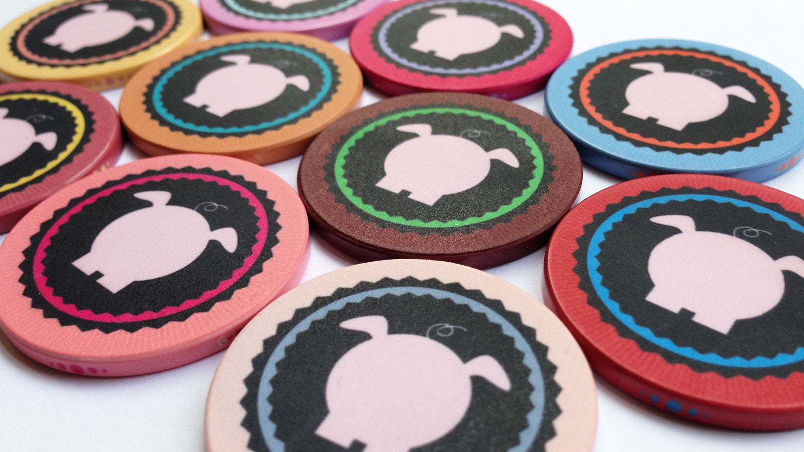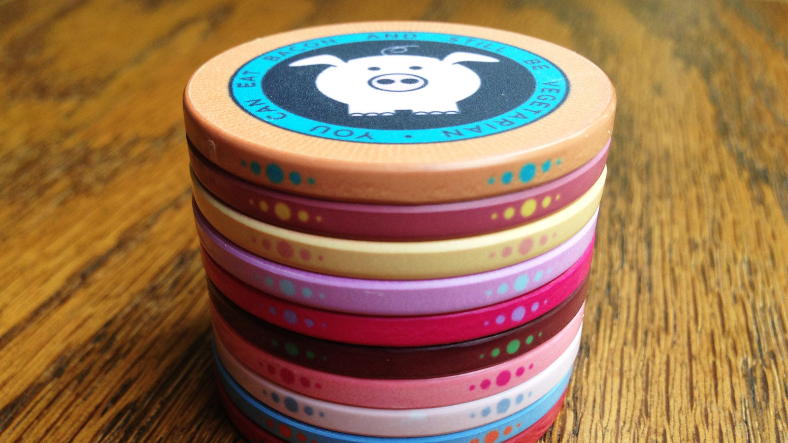 These whimsical poker chips were created alongside our Bacon playing cards and feature the 10 bacon commandments: