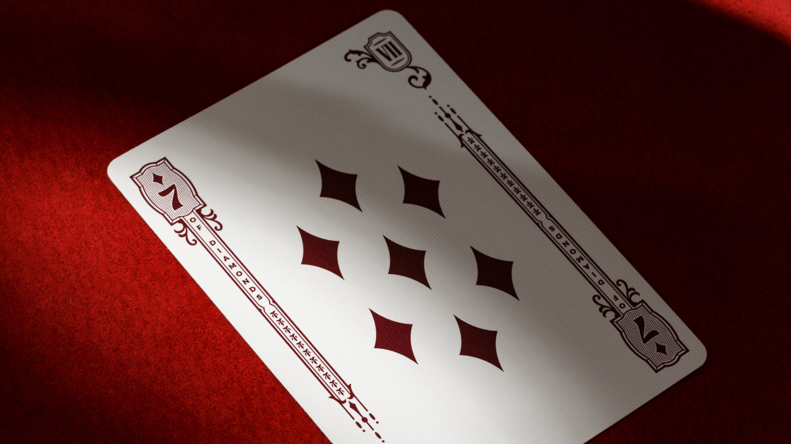 This edition features a striking red tuck with gold and red foiling, paired with elegant monochrome court cards. Limited to 2,500 individually numbered decks. Printed by USPCC, tuck by Gamblers Warehouse.